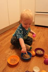 Don’t have eggs? Use small water bottles, or other storage containers. They can color them or leave them clear and they can see what’s inside.